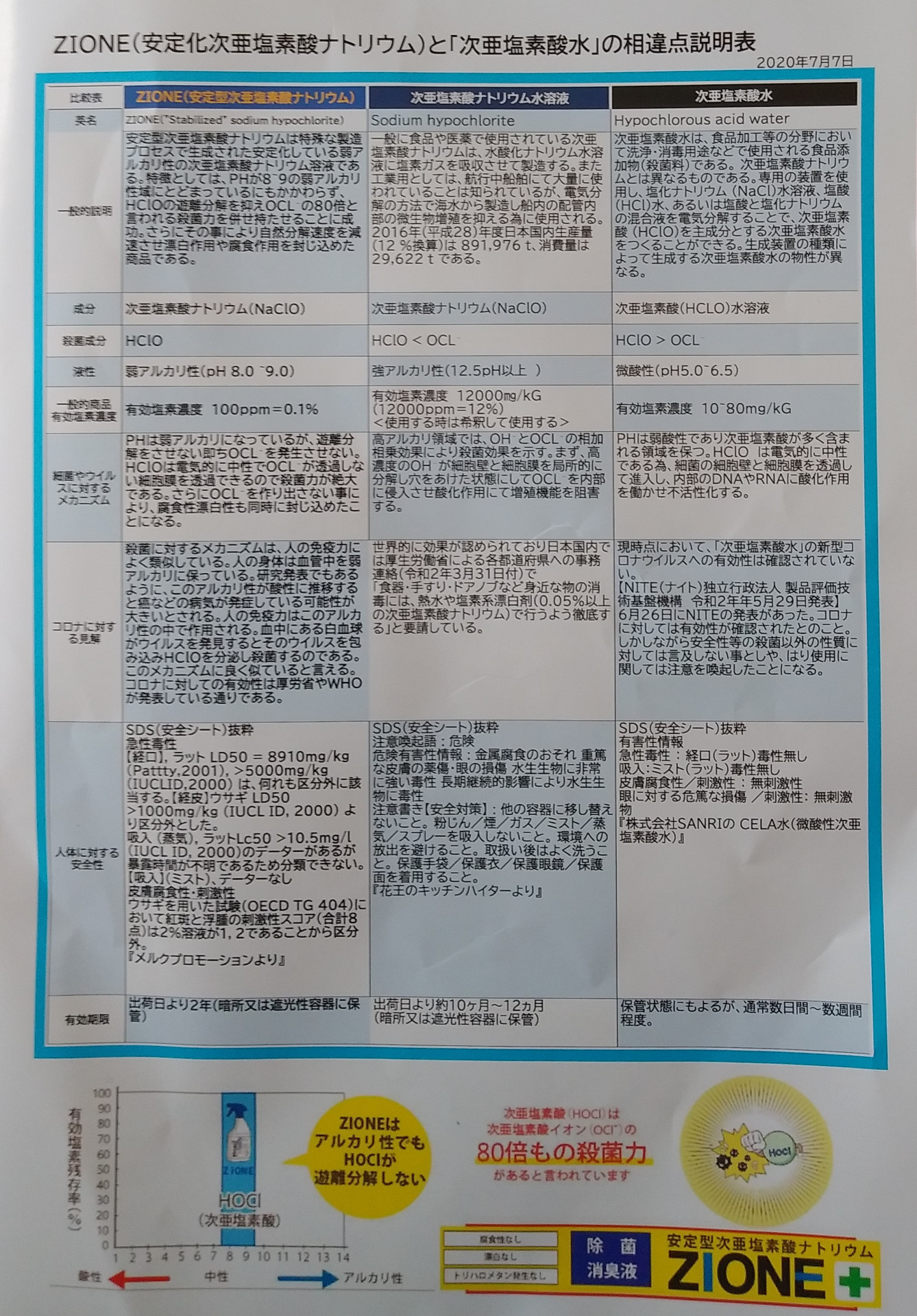 1.衣服やソファー、家具類は漂白され塩素臭が残るがZIONEは変色しないし塩素臭もなし。