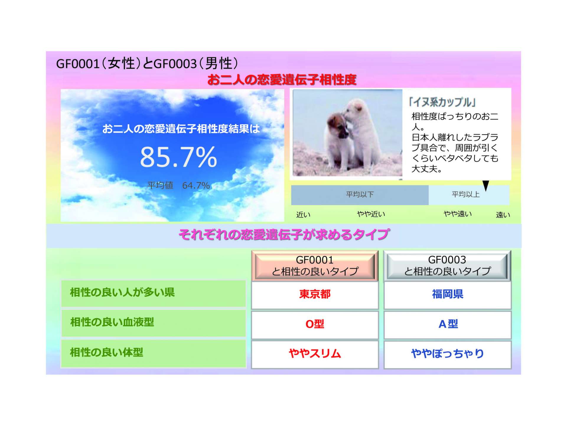 + DNA による生物的要素(遺伝子検査)により相性の良いベストパートナーをご紹介できるようになりました。