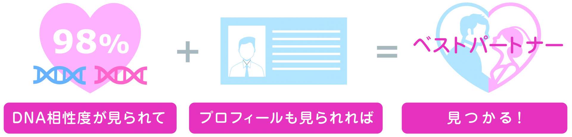 + DNA による生物的要素(遺伝子検査)により相性の良いベストパートナーをご紹介できるようになりました。