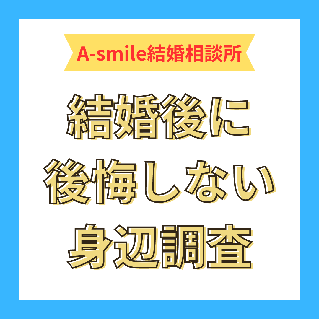 そこで、A-smile結婚相談所では結婚後も安心して生活していただけるよう、専任の「身辺調査」を承っております。